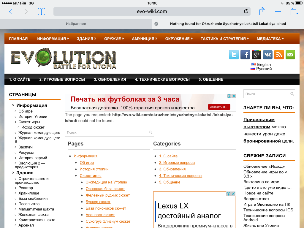 Попытка перейти из описания локации «Аннигилятор» к описанию локации «Исход» (ссылка «Следующая сюжетная локация») выдает ошибку (в имени закладки) и направляет на страницу поиска.