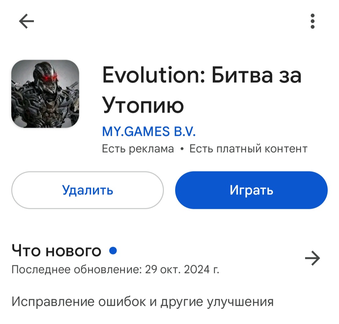 Всем привет! Кто нибудь знает что это за фигня? Последнее обновление от 22 ноября 2024 года, но версия так и не была обновлена на новую! Кау было 4.0.0, так и осталось. Причём я заметил что эта версия уже как год висит, обновления приходят, а цифры не меняются. Это баг гугл плея или разрабы что-то в коде меняют, принудительно не меняя версию игры? Если да, то как это вообще возможно? Ведь при любом обновлении, по идее, должна меняться версия игры хотя бы на единицу. К примеру 4.0.1